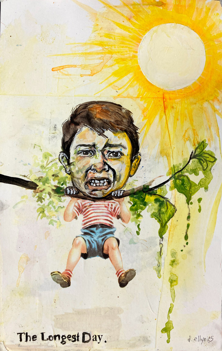7"x11" acrylic on Dick & Jane book page mounted on bristol paper